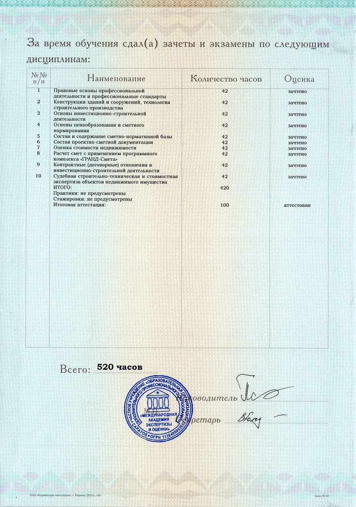 Объем программы: 520 часов.